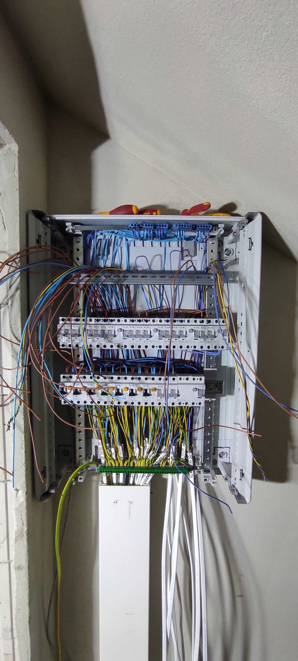Z dumą prezentujemy wybrane realizacje wykonane przez CK Elektroinstal. Każdy projekt to dla nas połączenie solidnego rzemiosła, nowoczesnych rozwiązań i indywidualnego podejścia do potrzeb klienta. Wykonujemy instalacje elektryczne w domach jednorodzinnych, budynkach usługowych, halach przemysłowych i obiektach użyteczności publicznej. Dzięki zaangażowaniu i doświadczeniu nasz zespół z powodzeniem realizuje zarówno standardowe zlecenia, jak i skomplikowane systemy automatyki czy instalacje fotowoltaiczne. Zapraszamy do zapoznania się z galerią naszych prac.